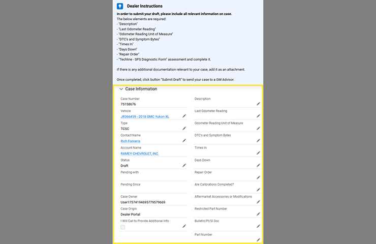 - TAC – Le formulaire de diagnostic comporte une question supplémentaire : « Êtes-vous certifié pour les systèmes haute tension? » (Prière de noter que si le dossier est lié à un système haute tension, le technicien doit être certifié pour les véhicules hybrides/électriques. Si ce n’est pas le cas, prière de nous contacter dès qu’un technicien certifié sera disponible.)