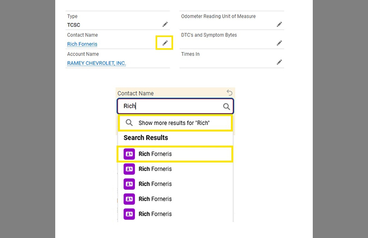 Les utilisateurs peuvent modifier le Nom du contact dans un dossier particulier pour d’autres membres du personnel de leur concession. (Fig. 3)