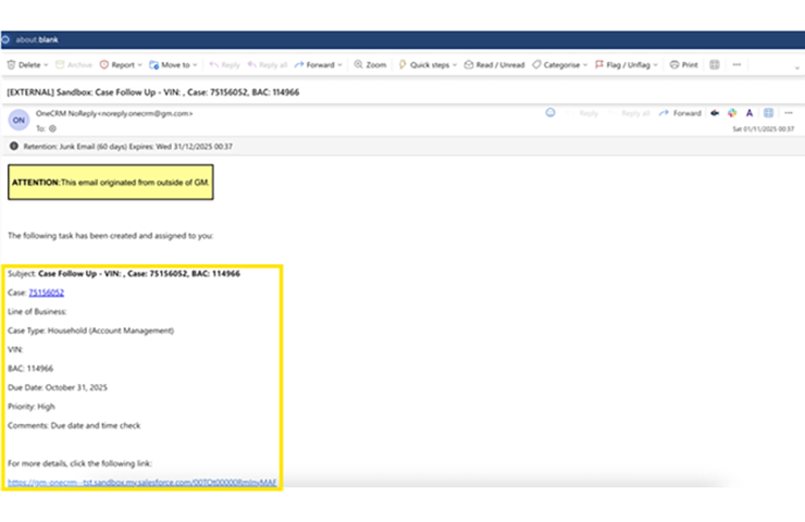 Les informations relatives aux notifications par courriel (Fig. 5) ont été mises à jour afin d’ajouter des informations dans l’objet et le corps du message pour une meilleure identification des cas, notamment :