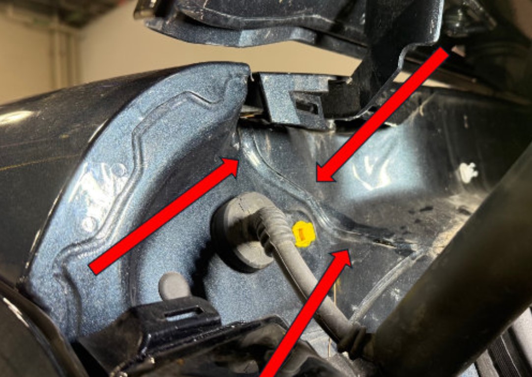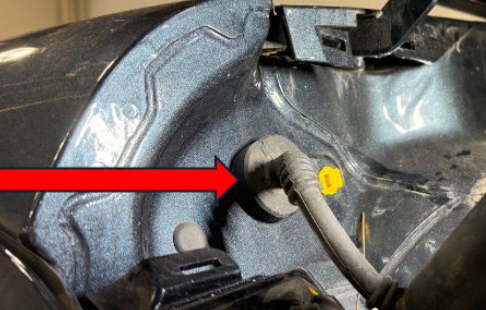 Passe-câble du faisceau de câbles de l’actionneur du hayon – Procéder à une inspection visuelle du passe-câble du faisceau de câbles de l’actionneur du hayon gauche sur toute la surface d’étanchéité du passe-câble (Fig. 16). Le remettre en place si nécessaire.