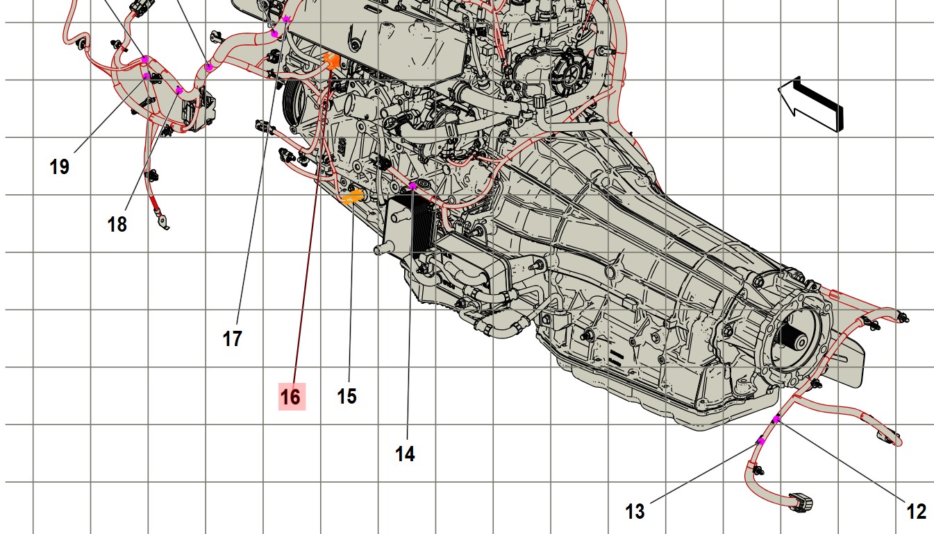 - Bulletin n° 25-NA-197 : friction du faisceau de câbles du moteur au niveau du bouclier thermique du turbocompresseur ou de la tringlerie de la soupape de décharge – Colorado, Canyon 2023-2025 (Fig. 2)