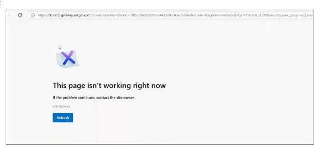Le message suivant peut être constaté lorsqu’on tente d’accéder à Techline Connect :