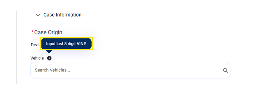 Afin de faciliter et d’accélérer la recherche du bon véhicule, une infobulle améliorée a été ajoutée à côté du champ de recherche de véhicule (Fig. 22). Passer la souris sur l’infobulle pour afficher des instructions claires sur la recherche à l’aide des 8 derniers chiffres du numéro d’identification du véhicule (VIN). Cette amélioration simple réduit la confusion et garantit la sélection du bon véhicule pour un cas donné, ce qui permet de gagner du temps et d’éviter les erreurs.
