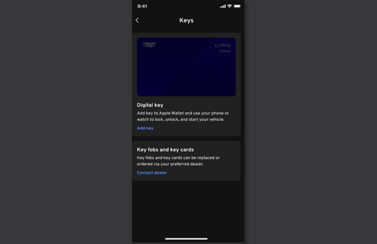 Les clients qui apportent leur véhicule pour un diagnostic du système de clé numérique doivent apporter leur porte-clés, leur carte-clé et partager une clé numérique avec un représentant du concessionnaire de confiance sur un appareil compatible connu.