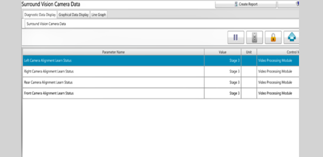 Dans certains cas, les caméras peuvent être défectueuses et aucun code d’anomalie ne sera établi tant que la caméra ne sera pas défaillante. Tant qu’aucun code n’est défini, la caméra peut effectuer un affichage aléatoire d’un état non appris après un cycle d’allumage. La caméra peut temporairement se trouver en mode de réapprentissage, mais peut perdre ce mode de manière intermittente lors d’un cycle de touches. De plus, il peut être nécessaire de laisser le véhicule à l’arrêt pendant plus de 5 minutes, moteur éteint, pour reproduire ce problème.