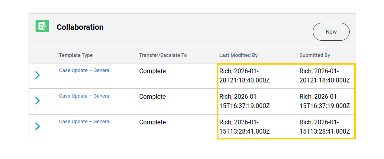 Les utilisateurs de CX Connect verront désormais apparaître des estampilles temporelles à côté des dates de collaboration : (Fig. 23)