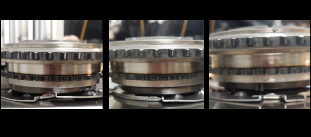 Les dommages subis par les bagues de réluctance sont facilement visibles lorsque l’actionneur est posé sur une surface de travail plane (Fig. 14). Ces dommages peuvent être plus difficiles à repérer lorsqu’on observe l’actionneur de face.